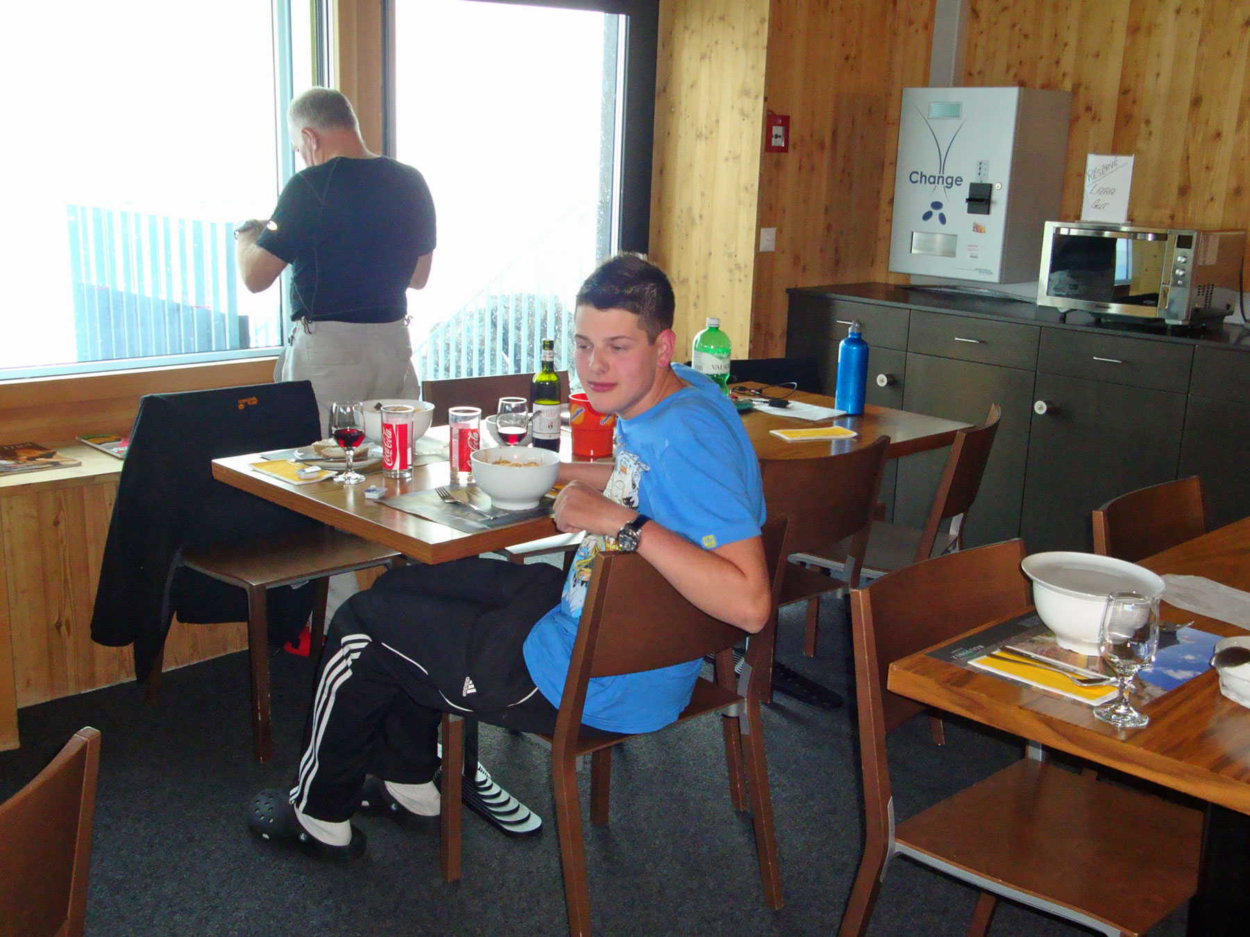 Am anderen Tag stehen wir früh auf, denn wir möchten zeitig auf den Pollux hoch gehen. Aber das Wetter ist noch nicht gut. Wir stecken in Mitten einer feuchten Wolke und können nichts sehen. Alse steigen wir wieder unter die Decke und schlafen bis um acht Uhr. Und tatsächlich, wir blicken aus dem Fenster und es ist wolkenlos, ein stahlblauer Himmel und sehr sonnig. Leider ist es nun zu spät für auf den Pollux. Aber einfach wieder nach Zermatt runter ist auch schade. Und auf dem Breithorn waren wir vorgestern. Was machen wir nun? Spitz schlägt vor, nicht wir gestern auf den Westgipfel des Breithorns, sondern den weniger begangene Zentralgipfel zu steigen.