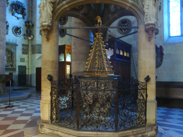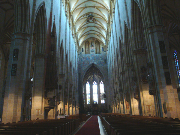 Heute ist Pfingstsonntag. Weil es in der Wohnung kein Frühstück gibt, gehe ich ins örtliche Bistro. Dieses ist ein neues, modernes Lokal mit Bäckerei. Vor mir kauft ein junger Mann fast den halben Laden leer. Was macht der wohl mit den über 40 Brötchen von verschiedenen Sorten? Das Frühstücksbüffet gibt es erst ab neun Uhr, und das ist mir zu spät. So erhalte ich einen Kaffee mit zwei Brötchen, Butter und Konfi. Bevor ich das Bistro verlasse, kaufe ich noch zwei Brötchen und einen Liter Mineral als Proviant. Dann steige ich vom Lontal hoch auf die Ebene Richtung Süden. Das Wetter ist schön und heiss. Ab und zu kühlt eine vorbeiziehende Wolke etwas ab. Die Wanderung bis Temmenhausen verläuft planmässig, teils auf sehr schönen Wegen, teils auf Asphalt. Nun verläuft der Weg entlang der Autobahn und dann folgt eine schöne Waldpartie. Nach einer längeren Strecke durch den Wald soll ich auf eine Asphaltstrasse stossen, dort rechts gehen und 200 Meter später links in einen Feldweg abbiegen. Dieser Beschreibung folge ich genau und lande nach gut eineinhalb Kilometern in Weidach. Und das ist definitiv falsch! Soll ich nun zurück gehen, oder irgendwie querfeldein auf den richtigen Weg zurück? Gemäss meiner bescheidenen Karte im Führer scheint da eine unwegsame Schlucht zu sein. Also beschliesse ich, leider zurückzugehen. Nach gut zwanzig Minuten bin ich dann wieder dort, wo ich auf die Asphaltstrasse eingebogen war. Ich wandere ein Stück der Strasse abwärts und plötzlich sehe ich wieder eine Jakobsmuschel am Baum. Jetzt folgt erst der Feldweg und führt durch ein langes und sehr romantisches Tal. Hier scheint ein Naherholungsgebiet von Ulm zu sein, denn es begegnen mir sehr viele Radfahrer, Familien mit Kinderwagen, Wandergruppen und einzelne Personen. Ein paar Kilometer später führt der Weg bergan aus dem Tal. Es ist heiss und schweissgebadet erreiche ich die Höhe und wandere nun weiter nach Mähringen, einen Stadtteil von Ulm. Dieser Ort ist aber gar nicht verbunden mit der Stadt. Da liegt noch ein ganzes grünes Tal und der Eselsberg mit der Universität dazwischen. Irgendwie verpasse ich wieder einmal ein Muschelzeichen und wandere viel zu weit östlich zum Talgrund hinunter. Auf der Gegenseite steige ich bis zum Berliner Ring hoch und erreiche schliesslich die Universitätsklinik. Nun durchschreite ich das riesige Gelände und treffe nach einem grossen Umweg tatsächlich wieder auf den Jakobsweg. Jetzt habe ich eine prächtige Aussicht auf die Stadt Ulm mit dem markanten Münster und dessen mit 161 Metern grösster Kirchturm der Welt. Noch fünf staubige Kilometer durch die glühenden Strassen von Ulm bis in die Innenstadt. Am liebsten würde ich jetzt ein Taxi nehmen, aber das lässt mein Stolz nicht zu und ich quäle mich zu Fuss weiter. Sehr müde nach einer strengen Etappe mit einigen Umwegen finde ich zum Glück das vor zwei Tagen reservierte Hotel Roter Löwe in der Ulmergasse auf Anhieb. Das mühsame Suchen nach einem Hotelzimmer bleibt mir heute erspart. Das Hotelzimmer ist natürlich das Beste, welches ich bis jetzt hatte. Aber auch das Teuerste. Das Preis/Leistungs-Verhältnis stimmt jedoch sehr gut! Schade nur, dass das dazugehörende Restaurant über die Pfingsttage geschlossen ist, denn auch das sieht super aus. Nach dem Duschen und Waschen gehe ich mit meinen müden Beinen nicht mehr weit. In der Umgebung sind viele Lokale geschlossen, aber eine Pizzeria ist offen. Ich bestelle dort einen feinen Ruccola Salat mit Parmesan und eine Pizza mit Schinken und Pilzen, dazu einen roten Chianti. Den Abend lasse ich bei einem dunklen Hefeweizen in einem Biergarten ausklingen.