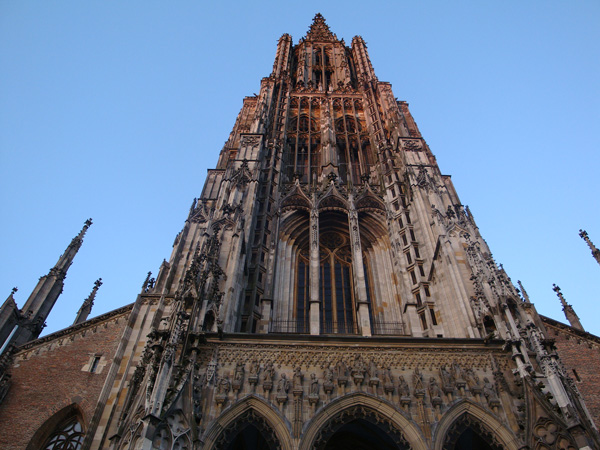 Heute ist Pfingstsonntag. Weil es in der Wohnung kein Frühstück gibt, gehe ich ins örtliche Bistro. Dieses ist ein neues, modernes Lokal mit Bäckerei. Vor mir kauft ein junger Mann fast den halben Laden leer. Was macht der wohl mit den über 40 Brötchen von verschiedenen Sorten? Das Frühstücksbüffet gibt es erst ab neun Uhr, und das ist mir zu spät. So erhalte ich einen Kaffee mit zwei Brötchen, Butter und Konfi. Bevor ich das Bistro verlasse, kaufe ich noch zwei Brötchen und einen Liter Mineral als Proviant. Dann steige ich vom Lontal hoch auf die Ebene Richtung Süden. Das Wetter ist schön und heiss. Ab und zu kühlt eine vorbeiziehende Wolke etwas ab. Die Wanderung bis Temmenhausen verläuft planmässig, teils auf sehr schönen Wegen, teils auf Asphalt. Nun verläuft der Weg entlang der Autobahn und dann folgt eine schöne Waldpartie. Nach einer längeren Strecke durch den Wald soll ich auf eine Asphaltstrasse stossen, dort rechts gehen und 200 Meter später links in einen Feldweg abbiegen. Dieser Beschreibung folge ich genau und lande nach gut eineinhalb Kilometern in Weidach. Und das ist definitiv falsch! Soll ich nun zurück gehen, oder irgendwie querfeldein auf den richtigen Weg zurück? Gemäss meiner bescheidenen Karte im Führer scheint da eine unwegsame Schlucht zu sein. Also beschliesse ich, leider zurückzugehen. Nach gut zwanzig Minuten bin ich dann wieder dort, wo ich auf die Asphaltstrasse eingebogen war. Ich wandere ein Stück der Strasse abwärts und plötzlich sehe ich wieder eine Jakobsmuschel am Baum. Jetzt folgt erst der Feldweg und führt durch ein langes und sehr romantisches Tal. Hier scheint ein Naherholungsgebiet von Ulm zu sein, denn es begegnen mir sehr viele Radfahrer, Familien mit Kinderwagen, Wandergruppen und einzelne Personen. Ein paar Kilometer später führt der Weg bergan aus dem Tal. Es ist heiss und schweissgebadet erreiche ich die Höhe und wandere nun weiter nach Mähringen, einen Stadtteil von Ulm. Dieser Ort ist aber gar nicht verbunden mit der Stadt. Da liegt noch ein ganzes grünes Tal und der Eselsberg mit der Universität dazwischen. Irgendwie verpasse ich wieder einmal ein Muschelzeichen und wandere viel zu weit östlich zum Talgrund hinunter. Auf der Gegenseite steige ich bis zum Berliner Ring hoch und erreiche schliesslich die Universitätsklinik. Nun durchschreite ich das riesige Gelände und treffe nach einem grossen Umweg tatsächlich wieder auf den Jakobsweg. Jetzt habe ich eine prächtige Aussicht auf die Stadt Ulm mit dem markanten Münster und dessen mit 161 Metern grösster Kirchturm der Welt. Noch fünf staubige Kilometer durch die glühenden Strassen von Ulm bis in die Innenstadt. Am liebsten würde ich jetzt ein Taxi nehmen, aber das lässt mein Stolz nicht zu und ich quäle mich zu Fuss weiter. Sehr müde nach einer strengen Etappe mit einigen Umwegen finde ich zum Glück das vor zwei Tagen reservierte Hotel Roter Löwe in der Ulmergasse auf Anhieb. Das mühsame Suchen nach einem Hotelzimmer bleibt mir heute erspart. Das Hotelzimmer ist natürlich das Beste, welches ich bis jetzt hatte. Aber auch das Teuerste. Das Preis/Leistungs-Verhältnis stimmt jedoch sehr gut! Schade nur, dass das dazugehörende Restaurant über die Pfingsttage geschlossen ist, denn auch das sieht super aus. Nach dem Duschen und Waschen gehe ich mit meinen müden Beinen nicht mehr weit. In der Umgebung sind viele Lokale geschlossen, aber eine Pizzeria ist offen. Ich bestelle dort einen feinen Ruccola Salat mit Parmesan und eine Pizza mit Schinken und Pilzen, dazu einen roten Chianti. Den Abend lasse ich bei einem dunklen Hefeweizen in einem Biergarten ausklingen.