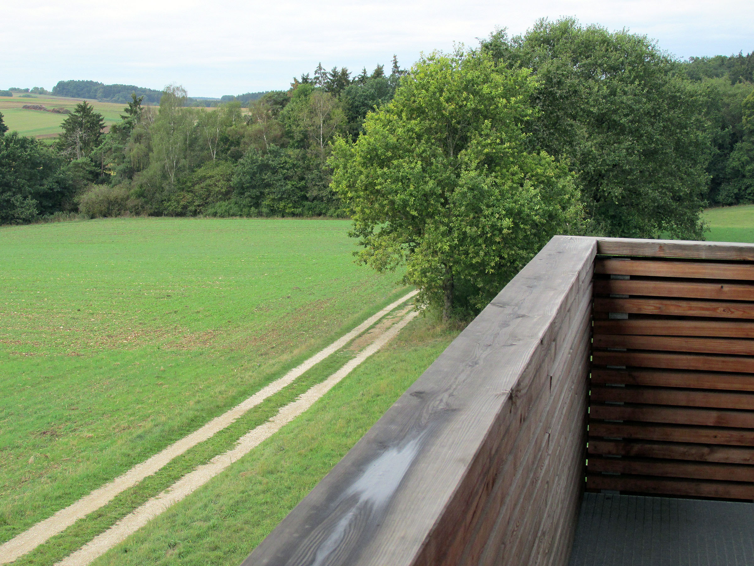 Nun folgt der fast schnurgerade Weg am Limes entlang. Es ist eine ehemalige von den Römern gebaute Mauer vom Rhein bis zur Donau, 550 Kilometer lang! An der ganzen Mauer entlang hatte es etwa 900 Wachposten. Ich besuche einen nachgebauten Signalturm.
