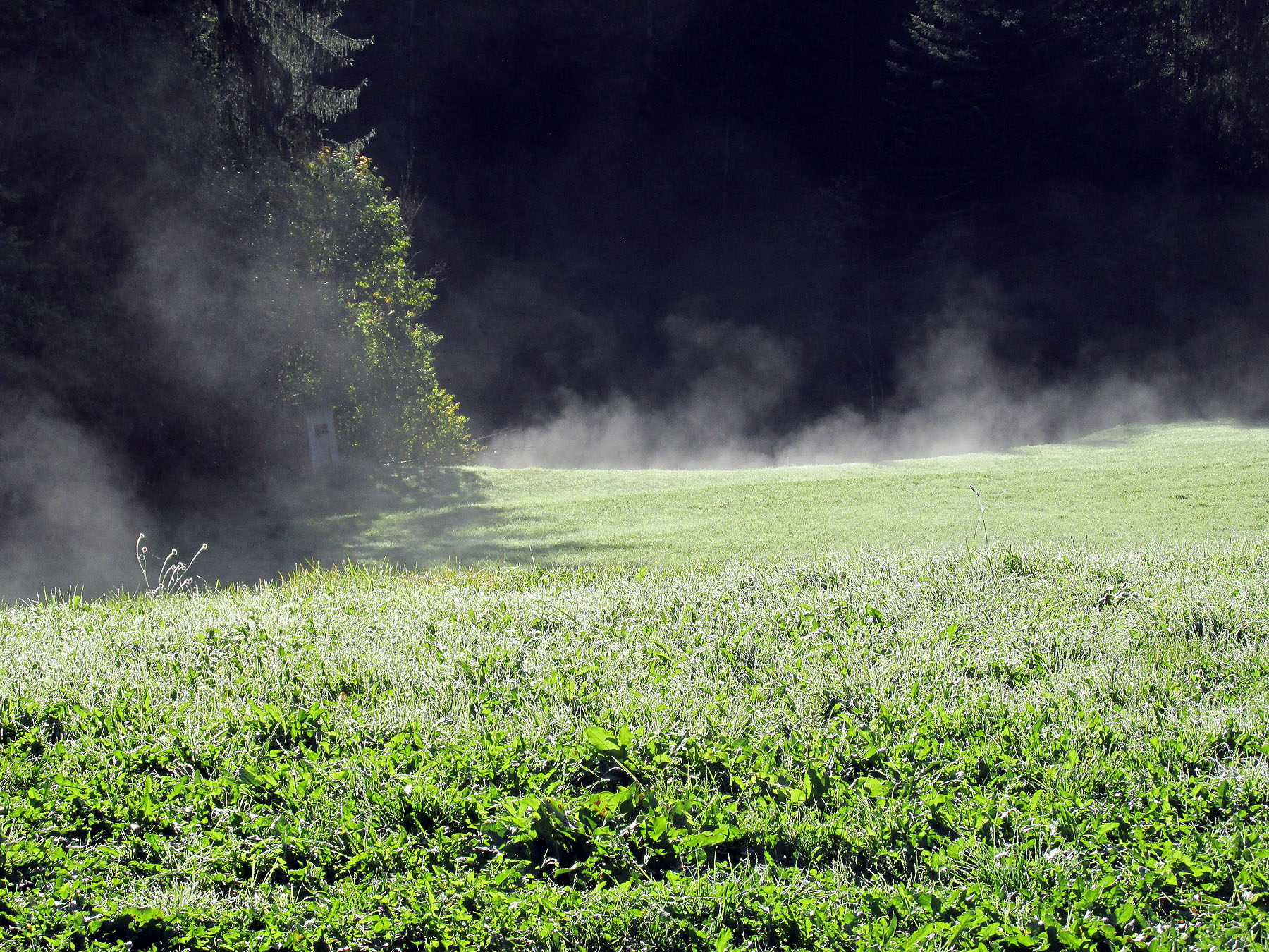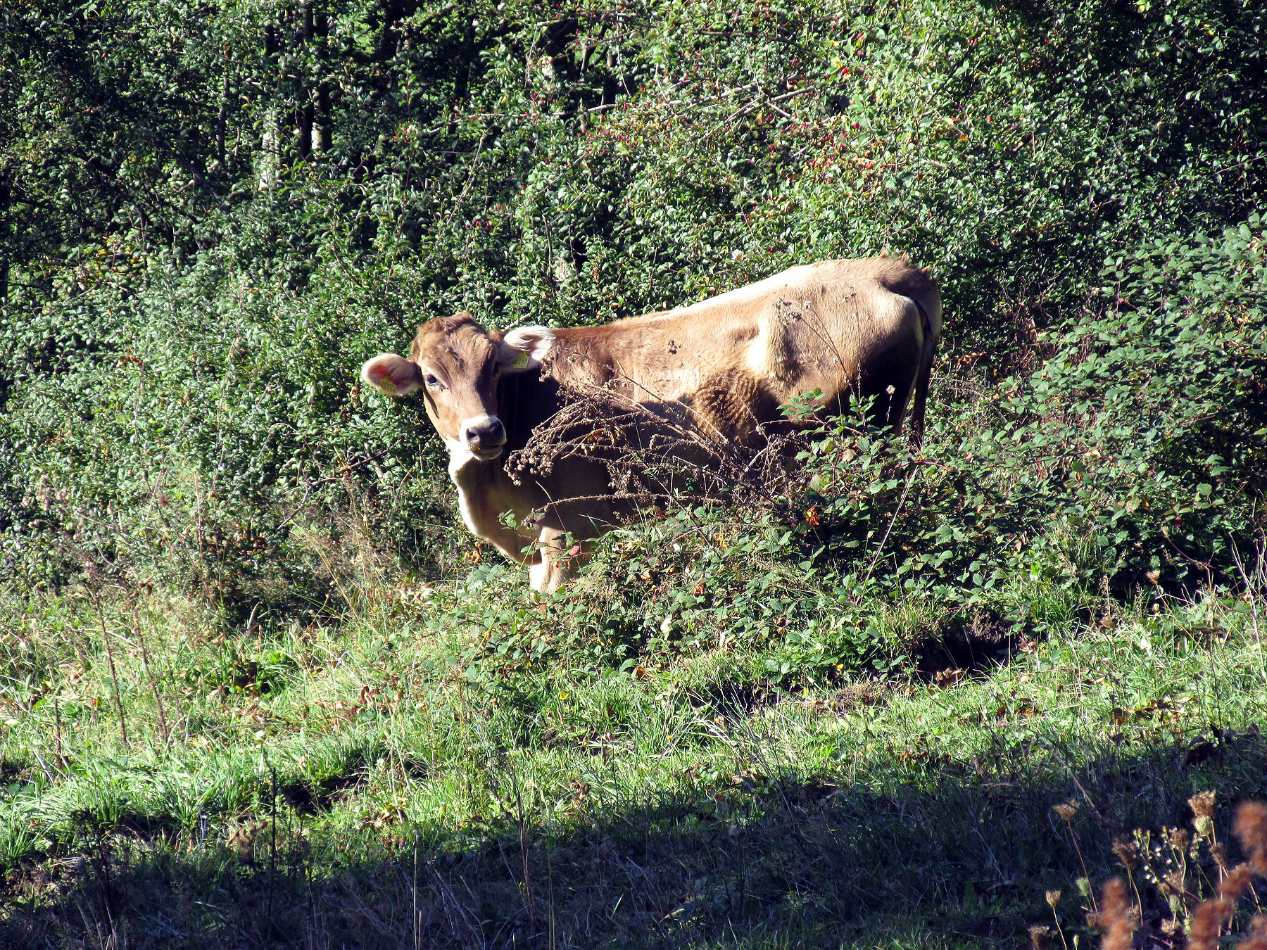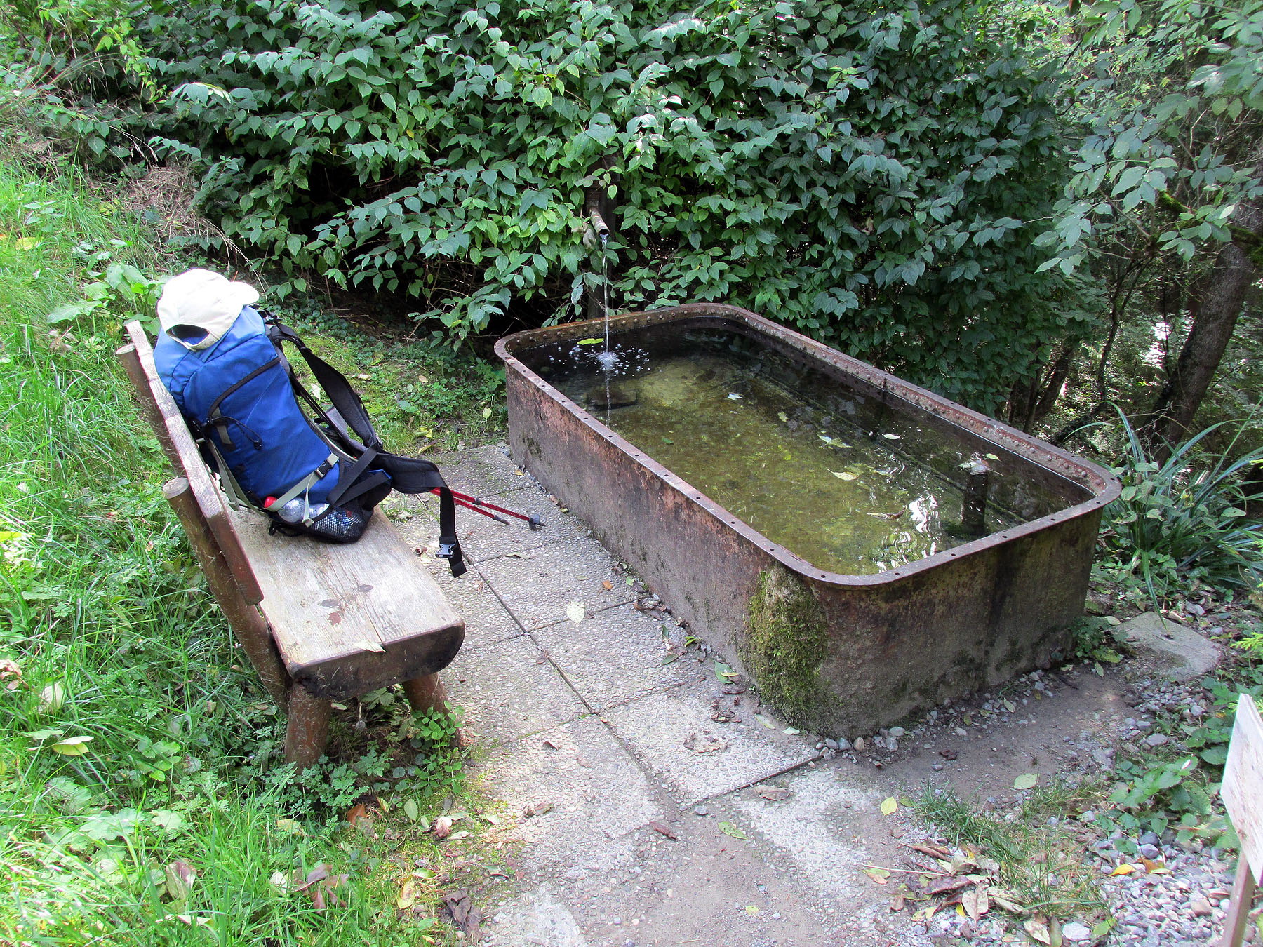 Leider sind es viele Asphaltstrassen. Und bei der brennenden Sonne komme ich recht ins Schwitzen. Ich wandere ohne Pause bis nach Genhofen. Nach kurzer Rast geht es weiter, immer auf und ab. Im Gegensatz zu gestern bei den wilden Kühen, passiert heute nichts Aussergewöhnliches. Auf dem Weg zwischen Simmerberg und Weiler wandere ich die gleiche Strecke wie vor acht Jahren. Aber ich kann mich gar nicht mehr erinnern. Es ist als wäre ich das erste Mal hier. Nach dem romantischen Abstieg erreiche ich Weiler, durchquere den Ort und nehme den Weg in Richtung Scheidegg. Vor acht Jahren wanderte ich mehr nördlich nach Lindenberg.