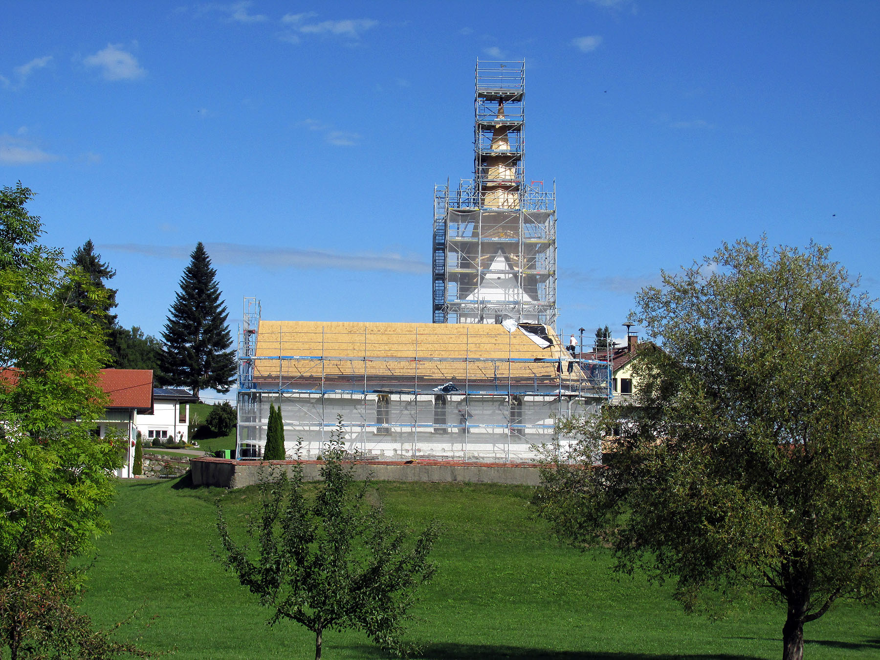 Nun marschiere ich los, aber nicht zurück nach Wilham, sondern direkt hoch auf eine Anhöhe und stosse nach etwa einer Stunde in Geratsried wieder auf den Jakobsweg. Das Wetter ist traumhaft und die Landschaft in verschiedenen Grüntönen, hügelig und ähnelt sehr der Schweiz. Es ist ja auch nicht mehr so weit von der Grenze entfernt.