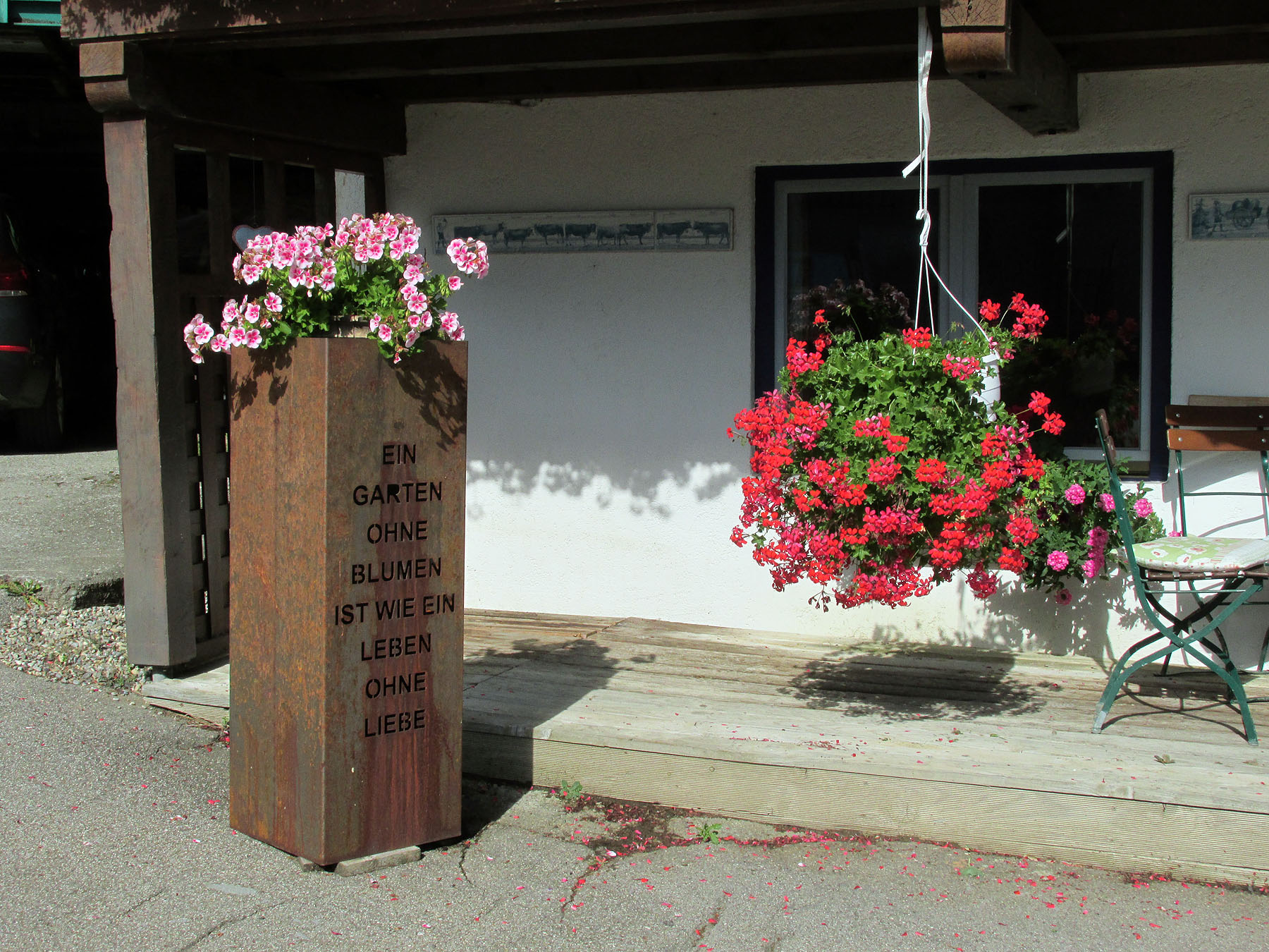 Nun beim Aufstieg nach Scheidegg begegne ich drei Pilgerinnen. Es sind drei Damen ungefähr in meinem Alter. Sie sind in München gestartet und wollen bis Lindau. Aber sie übernachten in Scheidegg nicht in der Pilgerherberge wie ich, sondern in einem Hotel.