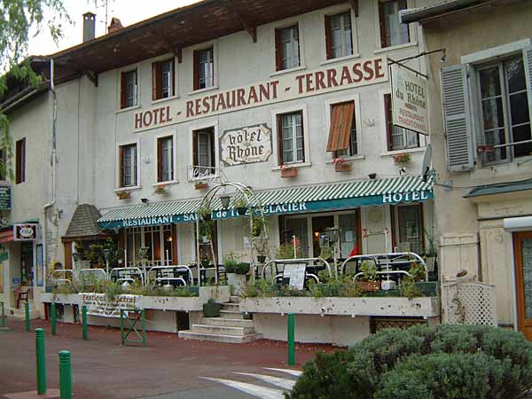 Sonntag ist auf dem Jakobsweg immer ein spezieller Tag. Exakt vor 2 Wochen bin ich in Stans gestartet. Und am Morgen früh, wenn ich starte ist es immer ruhig auf den Strasse. Nach dem Zmorge wandere ich mit den anderen Pilgern bergan in Richtung Seyssel. Weil das Wetter nicht so gut ist, hat Claire-Lise beschlossen, nach Hause zu fahren. Schon bald nach etwa 30 Minuten vermochten die anderen Pilger meinem Tempo nicht mehr zu folgen. Alleine wandere ich so etwa 3 Stunden über Felder und durch kleine Weiler bis die Abzweigung nach Seyssel kommt. Ich beschliesse also in das schmucke Städtchen an der Rhone abzusteigen. Dort treffe ich zwei junge Schweizerinnen, die ebenfalls bis nach Santiago wollen. Weil ich Hunger habe und der Regen etwas stärker wird, gönne ich mir im feinen Restaurant Hotel Rhone ein gutes Mittagessen. Die beiden Schweizerinnen wollen weiter bis Mathy. Leider habe ich sie nachher nie mehr getroffen. Nach der Stärkung wandere ich der Rhone entlang über schöne Wege bis Serrière. Es war schwierig hier eine Übernachtung zu finden, weil alles besetzt ist. Glücklicherweise reservierte ich bereits gestern Abend im Campingplatz einen Wohnwagen. Der Regen ist nun recht stark, hoffentlich ist es morgen besser. Mitten im Städtchen ist der Campingplatz. Ich erhalte den Schlüssel für einen ganzen Wohnwagen mit Vorzelt für mich alleine, eine super Sache. Nach dem Duschen fühle ich mich wieder fit. Im Vorzelt habe ich genügend Platz, meine nassen Kleider und Schuhe zum Trocknen aufzuhängen. Weil ich am Mittag bereits ein gutes Menü hatte, will ich eigentlich nur noch picknicken und einen guten Wein trinken im Wohnwagen. Hier sind aber alle Geschäfte zu, sogar der kleine Laden im Campingplatz. Überhaupt ist es ruhig hier, kein Mensch ist bei diesem Hudelwetter draussen. Ich beschliesse, in die nahe gelegene Pizzeria zu gehen.
