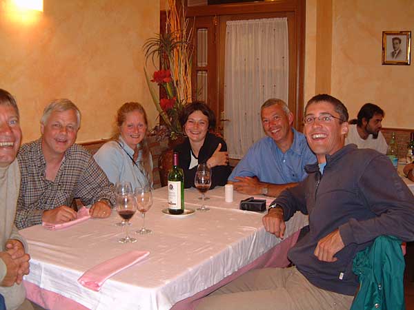 Weil ich eine kurze Etappe hinter mir habe, treffe ich wieder einige bekannte Pilger. Mit fünf von ihnen, zwei aus Belgien und je eine(r) aus Dänemark, Deutschland und Kanada, gehe ich in einem Restaurant in der Nähe ein Pilgermenü für 10 Euro all inclusive essen.