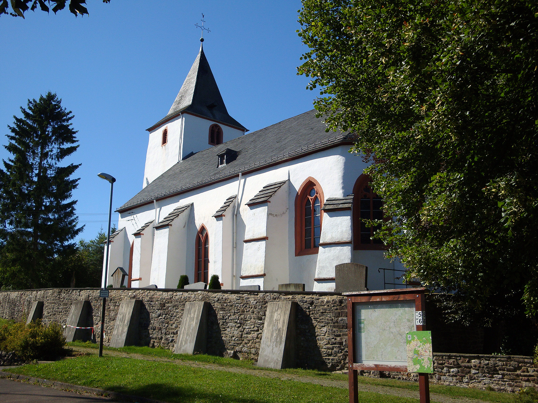 Hier im Restaurant sind schon einige Leute, welche auf ihr Nachtessen warten. Und dann das, eine Kellnerin gleitet mit einem Tablett frisch gezapften Bier auf dem Steinboden aus. Ihr hat es zum Glück nichts gemacht, aber es hat eine riesige Sauerei gegeben, alles Scherben mit Bier gemischt liegen am Boden verstreut herum. Das Nachtessen hier ist sehr gut und preiswert. Um etwa halb neun Uhr, ich bin soeben fertig mit dem Nachtessen, betritt eine junge Pilgerin, die ich gestern in Blankenheim schon gesehen habe, das Lokal. Sie scheint etwas gezeichnet von der langen Etappe.